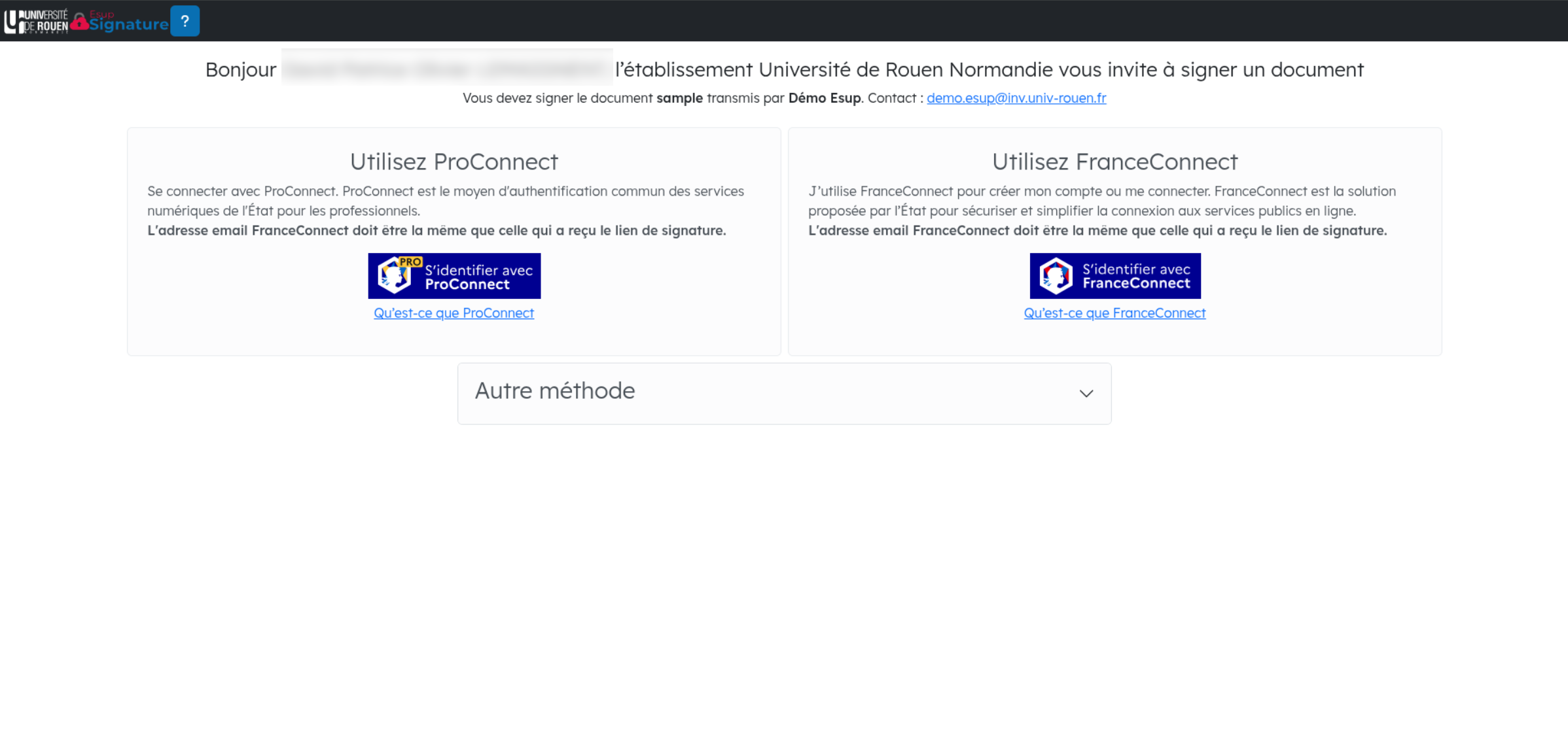 Esup-Signature propose plusieurs méthodes de connexion selon votre profil : compte université (CAS), Shibboleth (autre établissement), ProConnect, FranceConnect, ou SMS pour les utilisateurs externes.