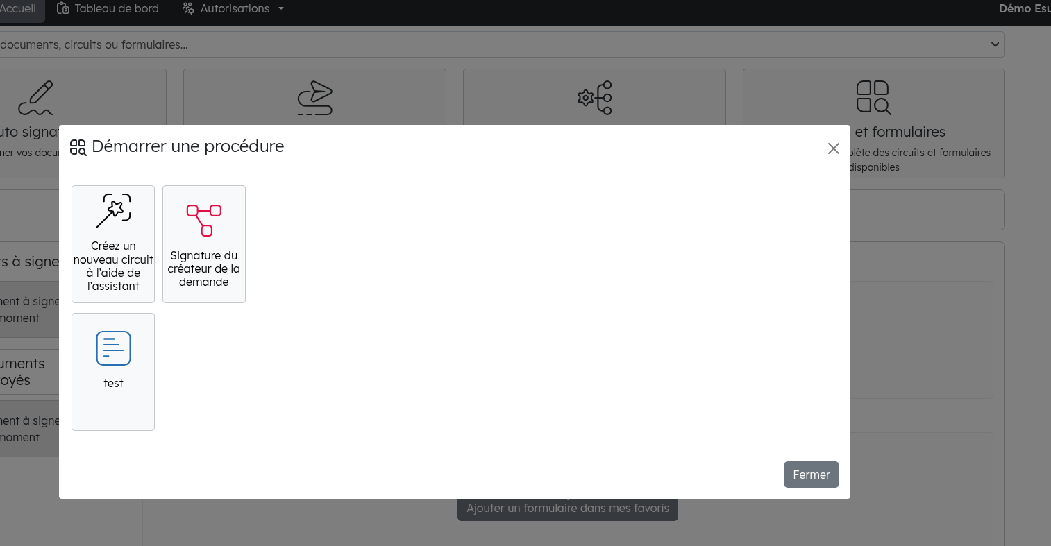 - Démarer un circuit ou un formulaire : Cliquez directement sur la tuile correspondante