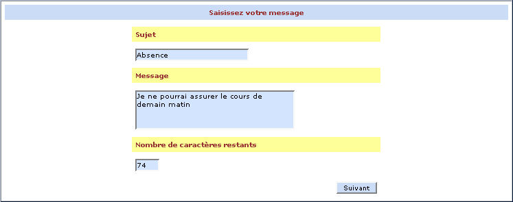 à saisir un sujet au message ainsi que le corps de celui-ci: