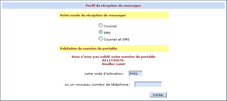 L'utilisateur a la possibilité de choisir le mode SMS pour