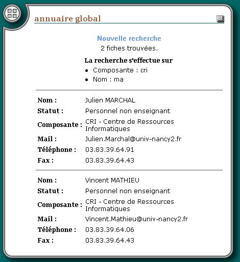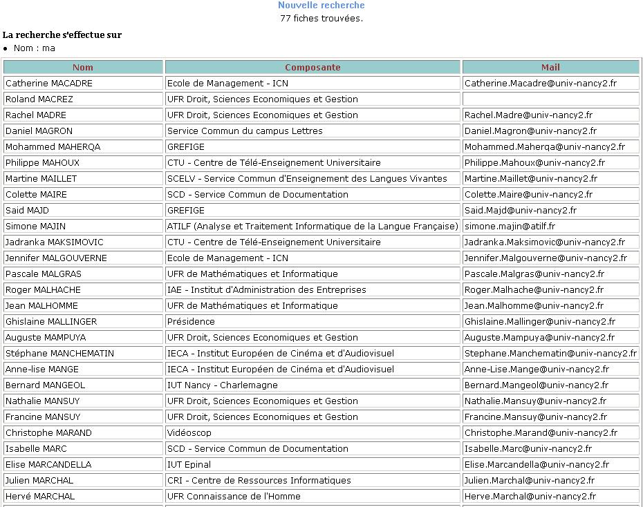 S'il y avait eu trop de résultats à la requête, ici strictement plus que 3 (cf maxCard de la config), une liste intermédiaire aurait été générée. Pour celà, recherchons les personnes dont le nom commence par "ma" mais sans se limiter à la composante CRI :