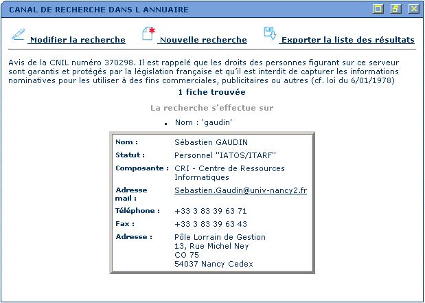 "Sébastien GAUDIN", j'obtiens cette fiche :
