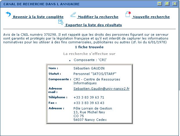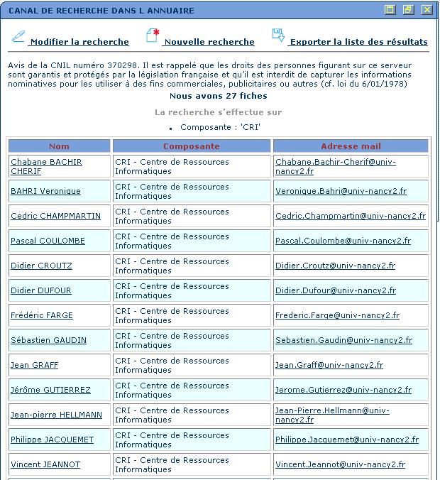 Dans cet annuaire, nous autorisons l'exportation du résultat. Le bouton est donc