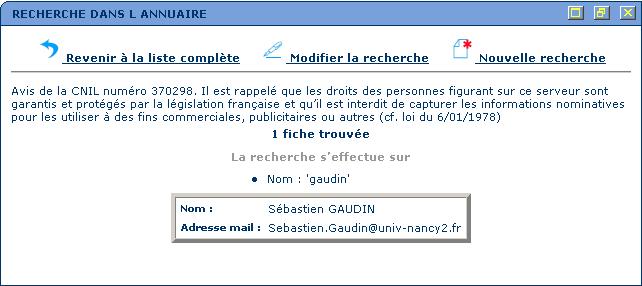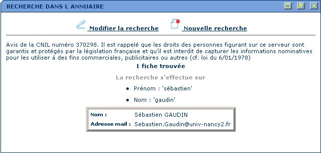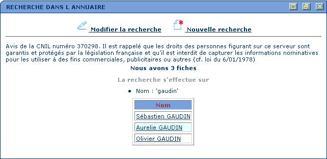 Nous allons faire une recherche sur nom="gaudin" et prénom="sébastien".
