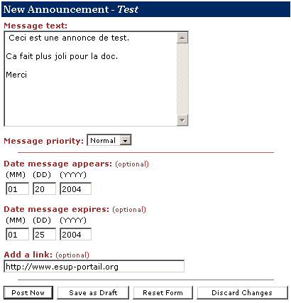 Par exmple : http://ent.univ-nancy2.fr/CAnnouncements.jsp?topicID=3