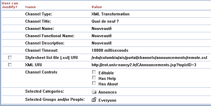 Le canal d'announcement est développé par l'université de Columbia. Il est disponible pour la communauté JASIG.