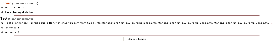 Sur le clic d'un sujet on voit toutes les annonces du sujet :