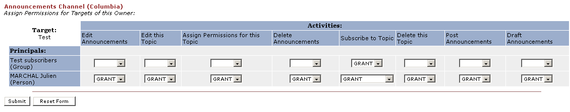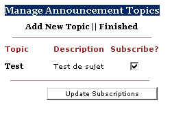 Lorsque l'on créé un nouveau sujet, le canal va créé un groupe uPortal qui se nomme"Test" subscribers (nom du sujet + subscribers). Ceci est assez ingénieux et permet de voir les possibilités offerte par des groupes applicatif.