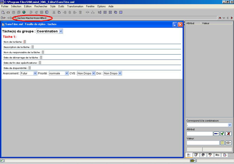 Avec la souris, en haut se trouve l'arborescence (taches*tache*nom*#text