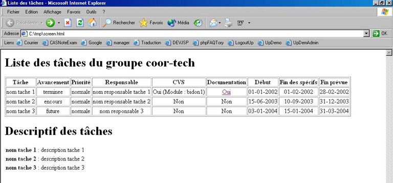 Il est issu de l'utilisation de taches_xhtml.xsl. Il est accessible depuis un
