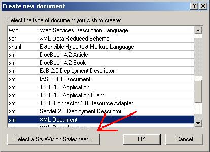 Cliquez sur le bouton "Select a StyleVision Stylesheet" pour avoir accès au masque de saisie. Dans la version "home" de Xml Spy, il n'y a aucun sps disponible. Le choix est donc très facile.