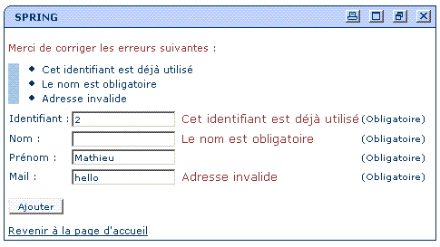 On a choisi ici de traiter ce type d'exception de façon non bloquante, un lien en bas de la vue permet de revenir à la page d'accueil de notre application.