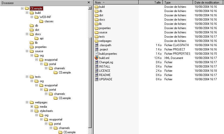 Exemple : C:\esupdev\esupdev-2.2\uPortal_2-2-quick-start\webapps\uPortal\WEB-INF\classes\org\esupportail\portal\channels\CExemple