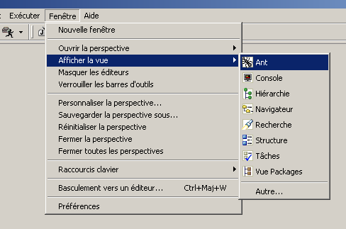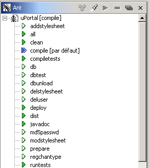 En dépliant la nouvelle ligne ajoutée à la vue ant on voit toutes les "target" du fichier build.xml.