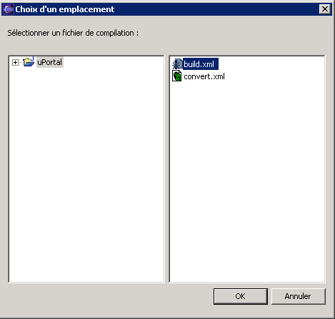 en cliquant sur les 3 petit + (en haut dans la bar de menu de la vue Ant) vous allez pouvoir ajouter un fichier xml pour l'execution de ant. Choisissez le build.xml du projet uPortal.
