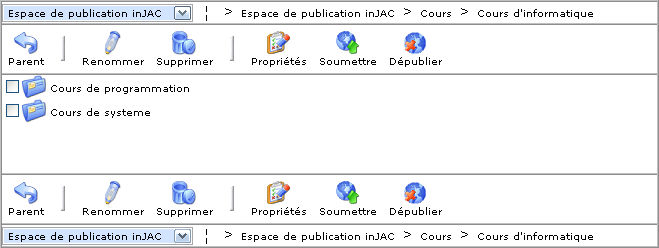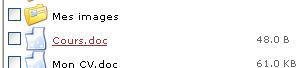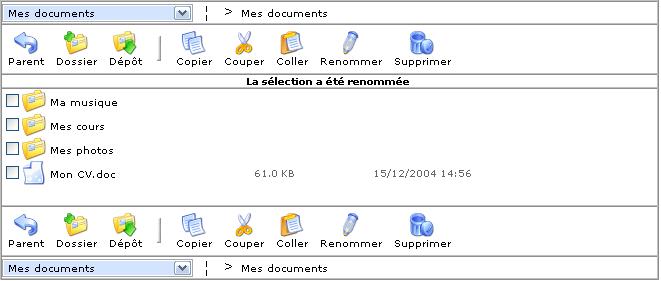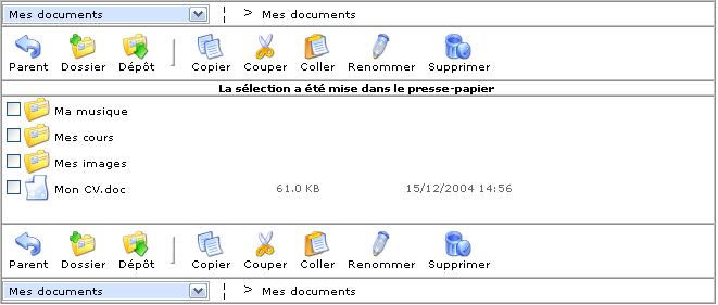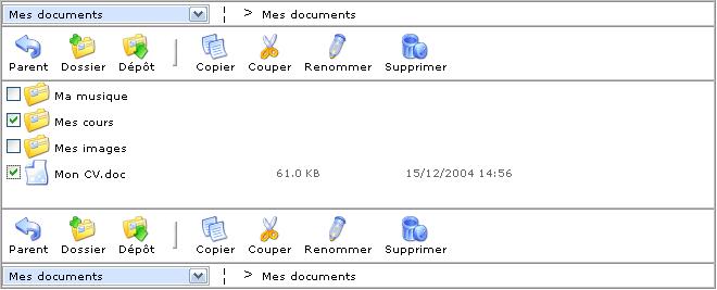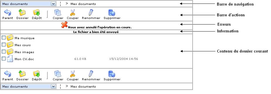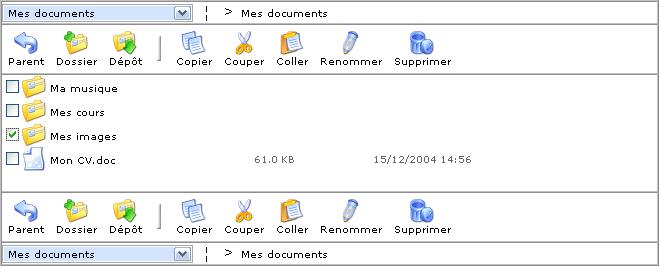 Cette partie permet l'affichage du contendu du dossier courant. Pour