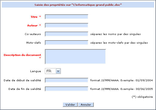Pour certains espaces, il se peut que l'administrateur du portail ait