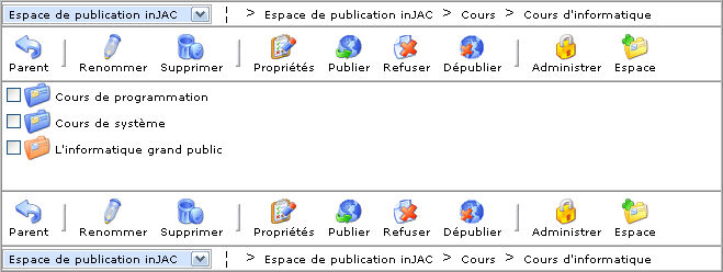 Le canal permet le navigation entre espaces. Chaque espace de stockage