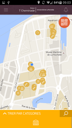 Affichage des POIs avec tri et recherche par type + geolocalisation intra-batiment (lecteur QRCode intégré)