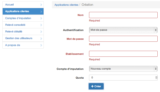 Les messages en rouge s'affichent pour mettre en évidence l'obligation de saisir les champs obligatoires.