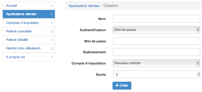 Cliquer sur le menu « Application clientes » puis sur l'icône « Modifier » de l'application à modifier :