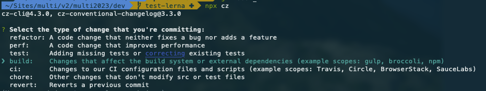 $ npx commitizen init cz-conventional-changelog --save-dev --save-exact