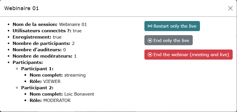 Chaque serveur d'ingestion pourra alors être utilisé pour réaliser un webinaire.