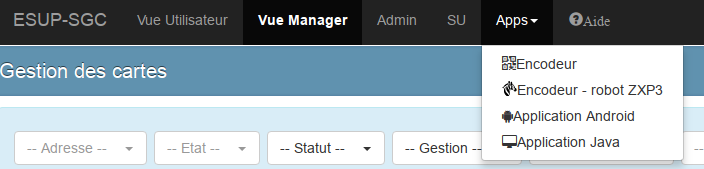 • esup-sgc-client-zxp3 : encodeur 'de masse' utilisant unz zxp3, il dépend de jar et dll Zebra que l'on ne peut s'autoriser à distribuer ; si vous souhaitez utiliser cet encodeur, vous devez le compiler vous-même (et signer le jar par vous-même).