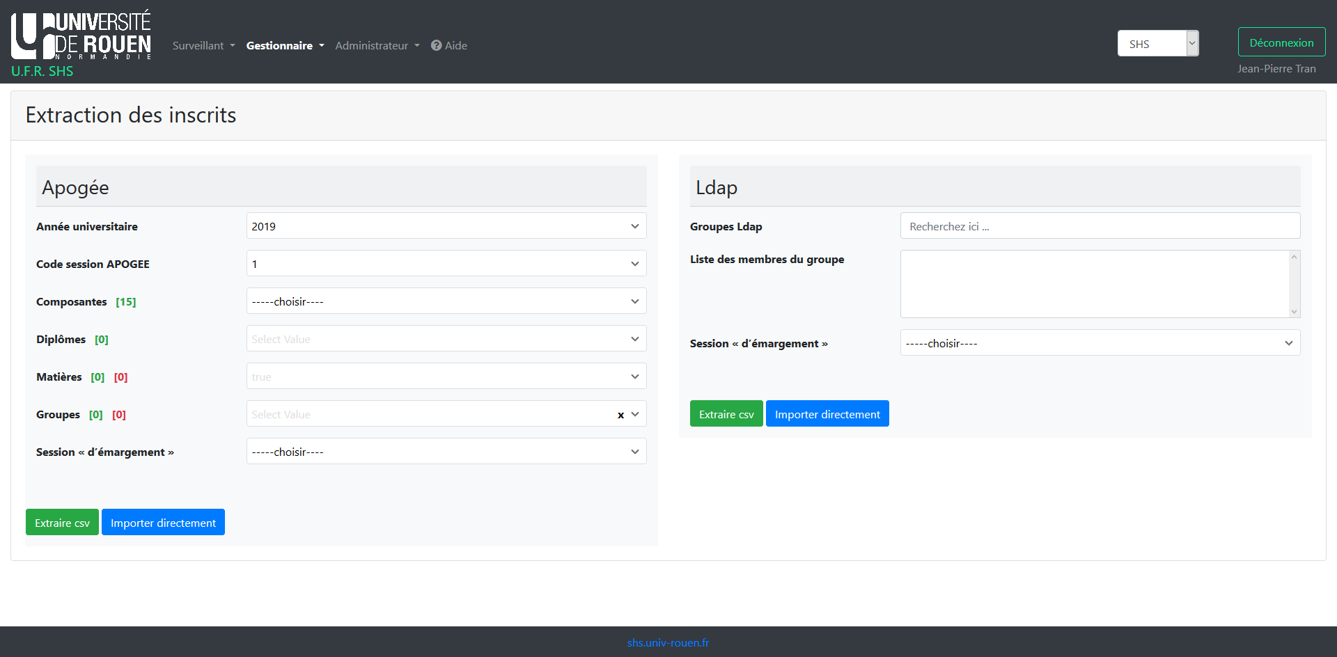 L'application se base sur une application initialement écrite en PHP à l’Université de Rouen Normandie.