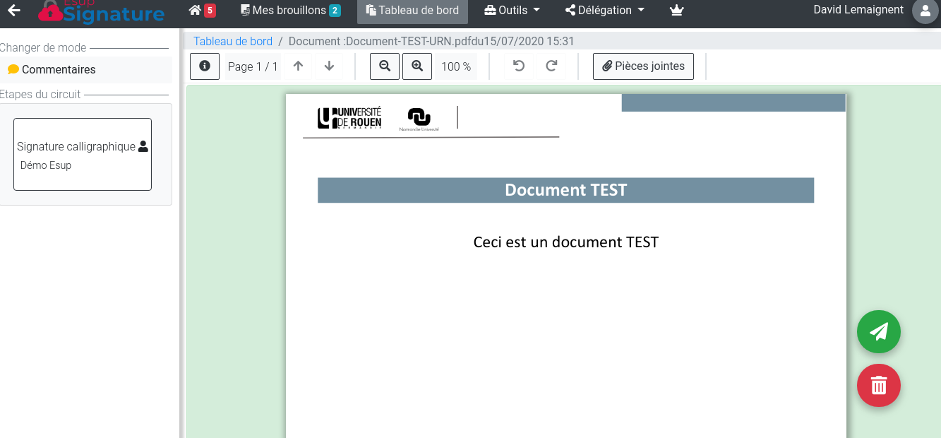 Lorsque tout est correct vous pouvez valider en cliquant sur le bouton vert et si besoin ajouter un commentaire avant de valider définitivement.