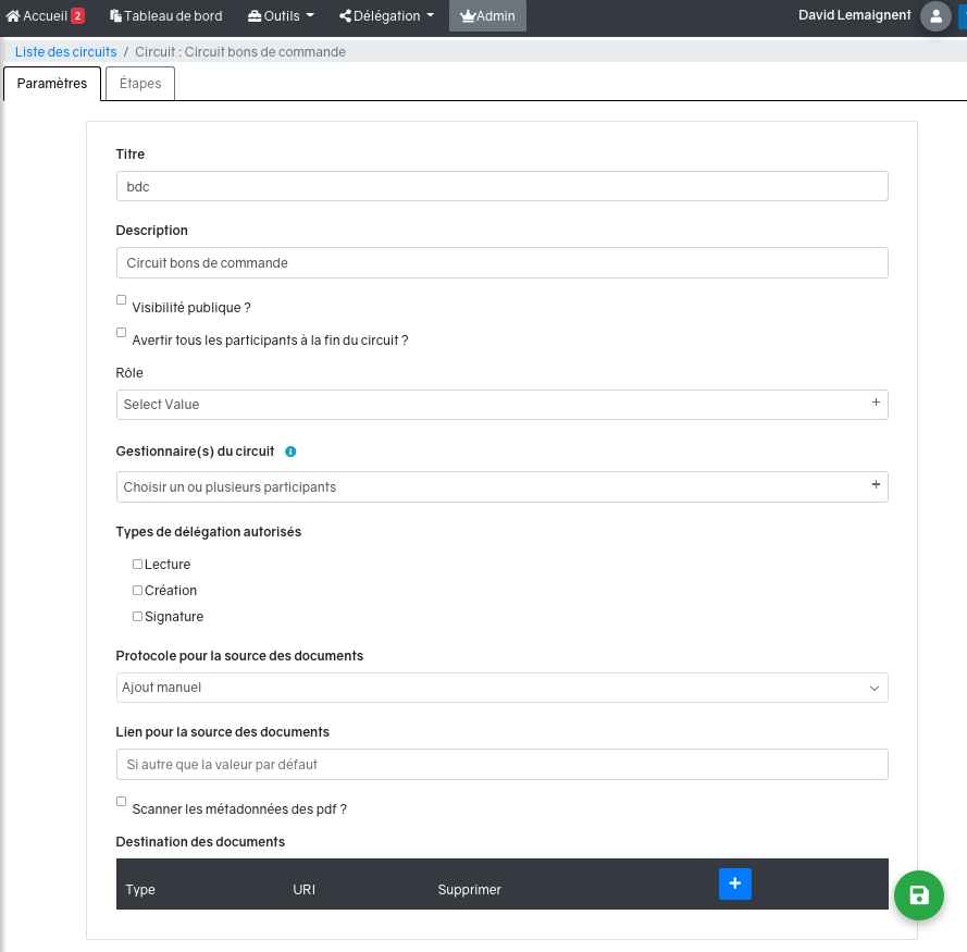 Pour chaque circuit on peur saisir un lien vers lequel le compte configuré à un accès complet, par exemple : smb://<host>/bdc/a_signer par exemple.