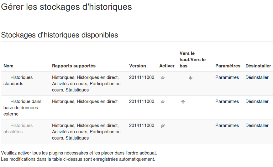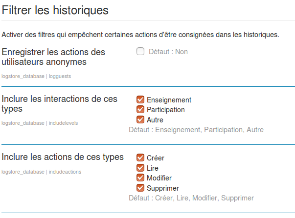 Pour mettre en place cette nouvelle base, connectez-vous à la page de gestion des stockages d'historiques (moodle.univ.fr/admin/settings.php?section=managelogging)