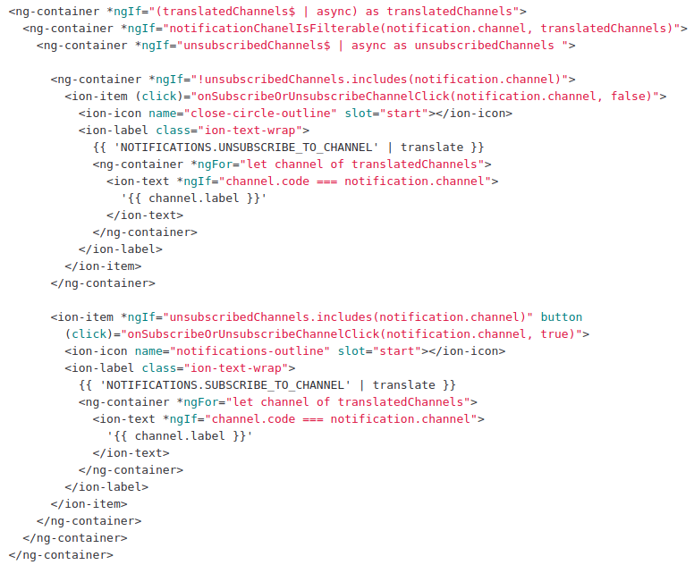 Privilégier l’utilisation du pipe async avec un Observable & pipe , plutôt que de faire un