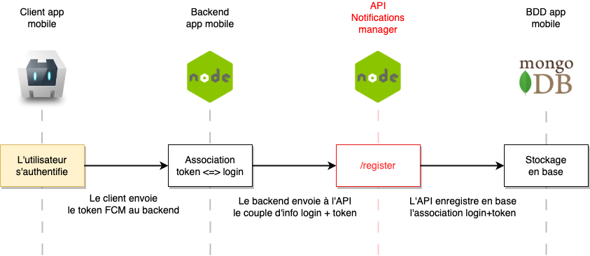 2- Firebase renvoie donc un token que Multi retourne au connecteur pour enregistrement en base (c’est le /register)