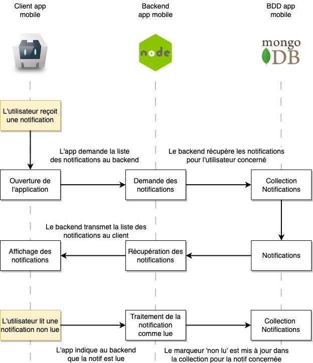 Enfin quand l’utilisateur reçoit la notification push, il ouvre l’application et récupère les messages via l'API de l'application de notification. Firebase n’intervient plus.