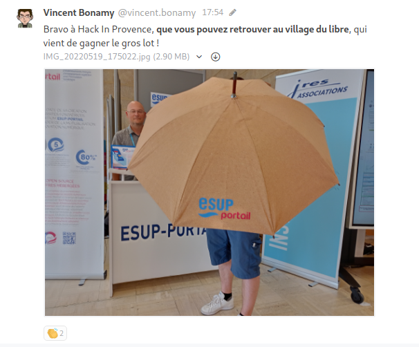 Vers la fin du congrès, on a pu donner un coup de projecteur sur cette page wiki au travers du Rocket Chat ESUP (utilisé par ailleurs comme outil de communication pour tous les participants de ces JRES 2021/2022) afin notamment, en filigrane, d'indiquer que le jeu pouvait, en plus d'être prédictif, être sujet à la tricherie