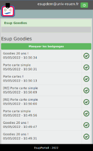 Lors des JRES 2021 (2022) à Marseille et en présentant un badge/périphérique RFID (en privilégiant la carte multi-services de votre établissement si vous en disposez) au stand Esup-Portail, en fonction du numéro de série de ce badge, vous gagnez un des goodies ESUP-Portail.