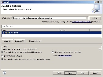 Sélectionner Checkstyle puis valider toutes les étapes suivantes :
