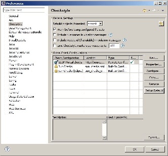 Ouvrir les préférences d'Eclipse (menu Window > Preferences > Checkstyle) :