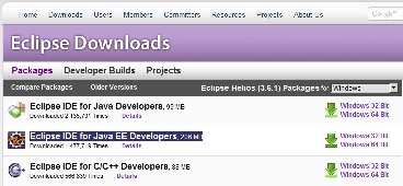 Installer le package Helios de Eclipse. Choisir "Eclipse IDE for Java EE Developers" sur http://www.eclipse.org/downloads/ :