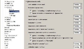 Ouvrir les préférences d'Eclipse puis modifier les options de compilation (menu Window > Preferences > Java > Compiler > Errors/Warnings) :