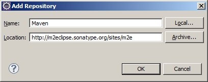 Procéder ensuite à l'installation de M2Eclipse : dans Eclipse, ouvrir le menu Help > Install New Software > Add... et indiquer le site http://m2eclipse.sonatype.org/sites/m2e :
