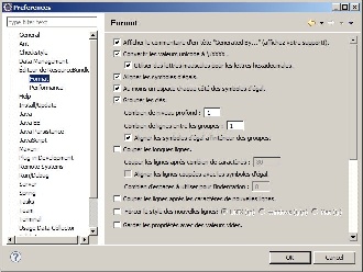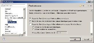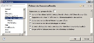 RBE (Resource Bundle Editor) est utilisé pour éditer les fichiers de ressources de l'internationalisation. Il doit être configuré de la même manière par tous les développeurs pour obtenir le même formatage et ainsi éviter les problèmes de conflits sur le dépôtSVN. (menu Window > Preferences > Editeur de ResourceBundle) :