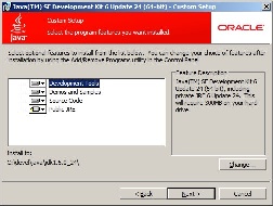 Choisir le répertoire principal d'installation (par ex. *C:\devel\java\jdk1.6.0_24*), ne pas installer le JRE :