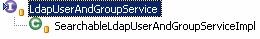 L'implémentation utilisée pour manipuler seulement les utilisateurs LDAP est SearchableLdapUserServiceImpl.