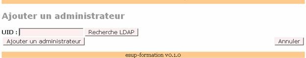Nous prenons ici le cas d'une page d'administration, qui permet de gérer les administrateurs d'une application. L'utilisateur de l'application doit pouvoir ajouter des administrateurs en cherchant dans un annuaire LDAP.La page d'ajout, administratorAdd.jsp, ressemble à :