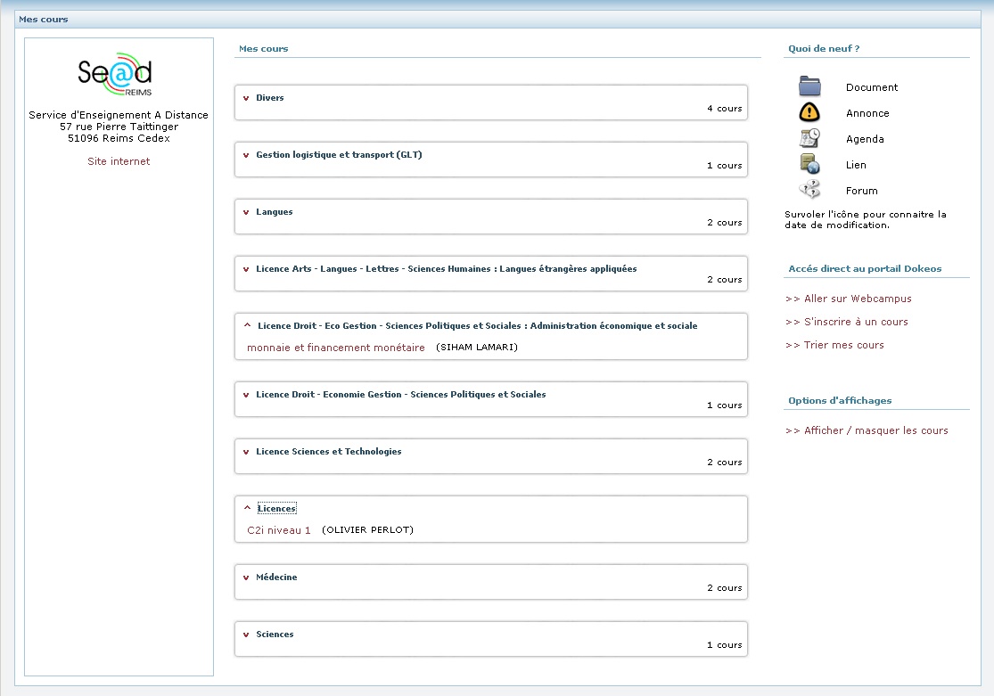 Ce canal permet la restitution des incriptions de l'utilisateur sur la plateforme d'enseignement à distance Dokeos