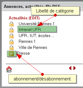 En cliquant sur le bouton abonnement/désabonnement situé à gauche du libellé d'une catégorie on peut s'abonner ou se désabonner de la catégorie.