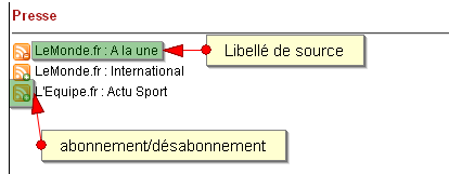 En cliquant sur le bouton abonnement/désabonnement situé à gauche du libellé d'une source on peut s'abonner ou se désabonner de la source.