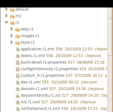 Le répertoire r1 contient les configurations spécifique à rennes1. Cela inclus les déclarations de certains webservices, les styles des documents PDF (fichier *.xsl) et les feuilles de styles.